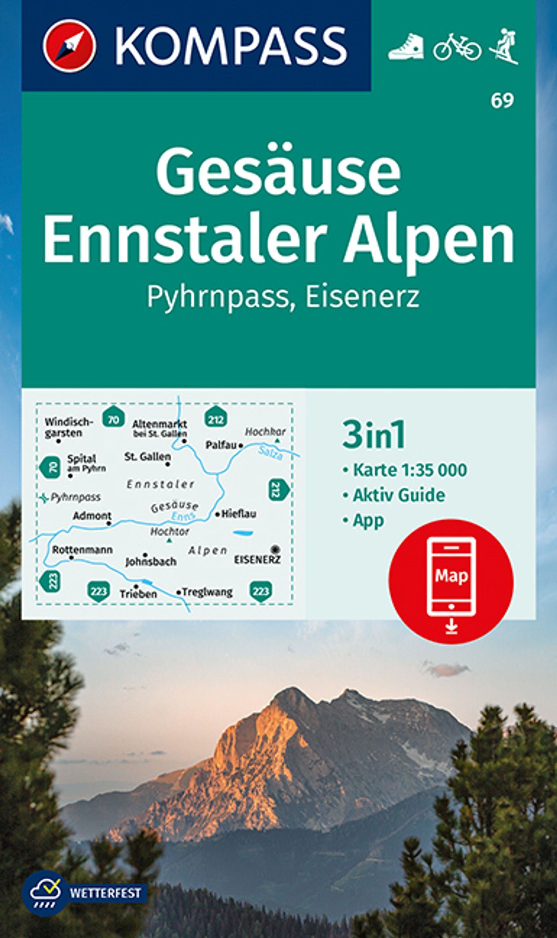 KOMPASS Wanderkarte Gesäuse, Ennstaler Alpen, Pyhrnpass, Eisenerz 1:35 000 (německy)
