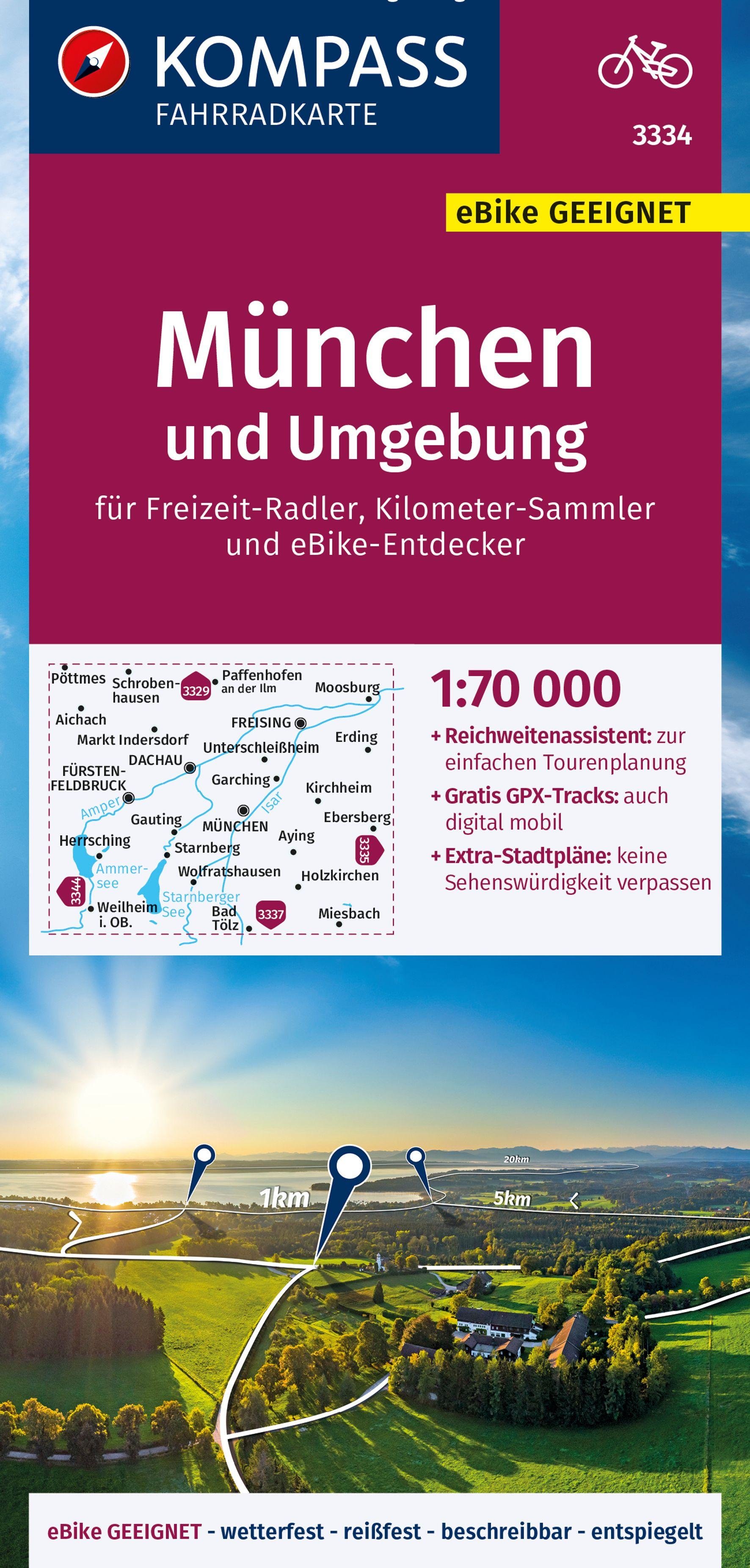 KOMPASS Fahrradkarte 3334 München und Umgebung, 1:70000 (německy)