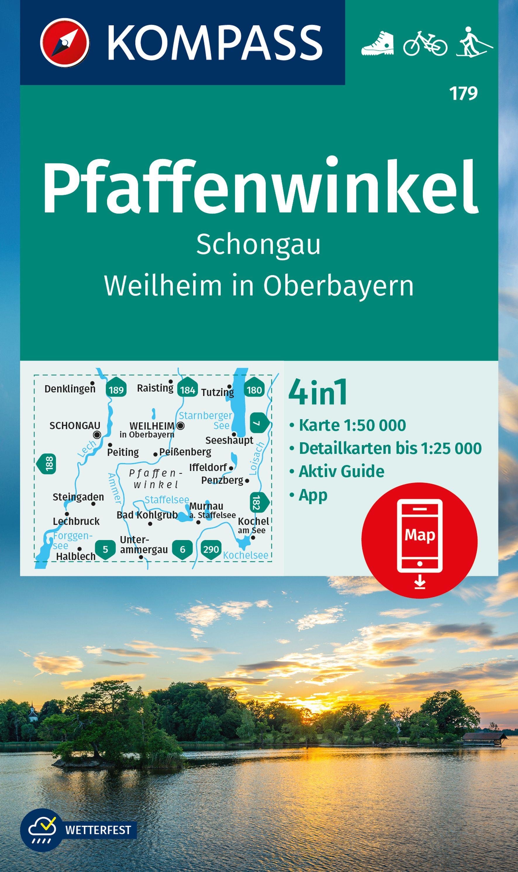 KOMPASS Wanderkarte 179 Pfaffenwinkel, Schongau, Weilheim i. OB 1:50.000 (německy)