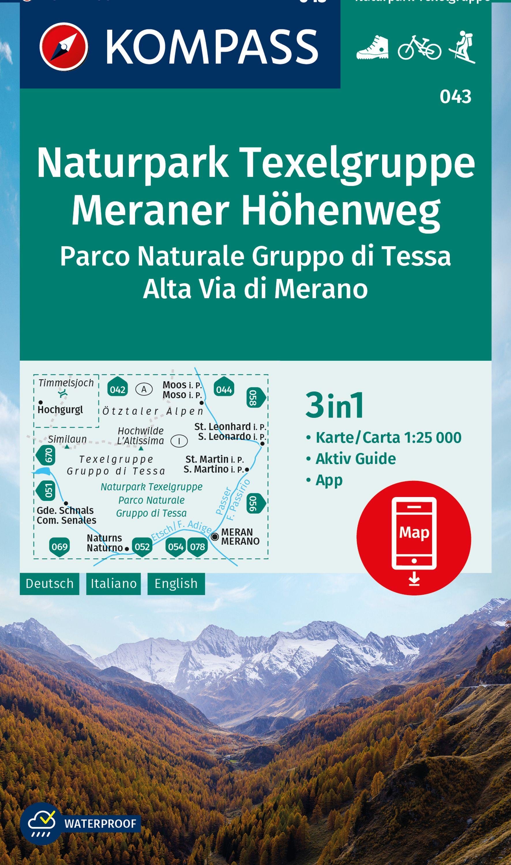 KOMPASS Wanderkarte 043 Naturpark Texelgruppe, Meraner Höhenweg, Parco Naturale Gruppo di Tessa, Alta Via di Merano 1:25.000 (německy)