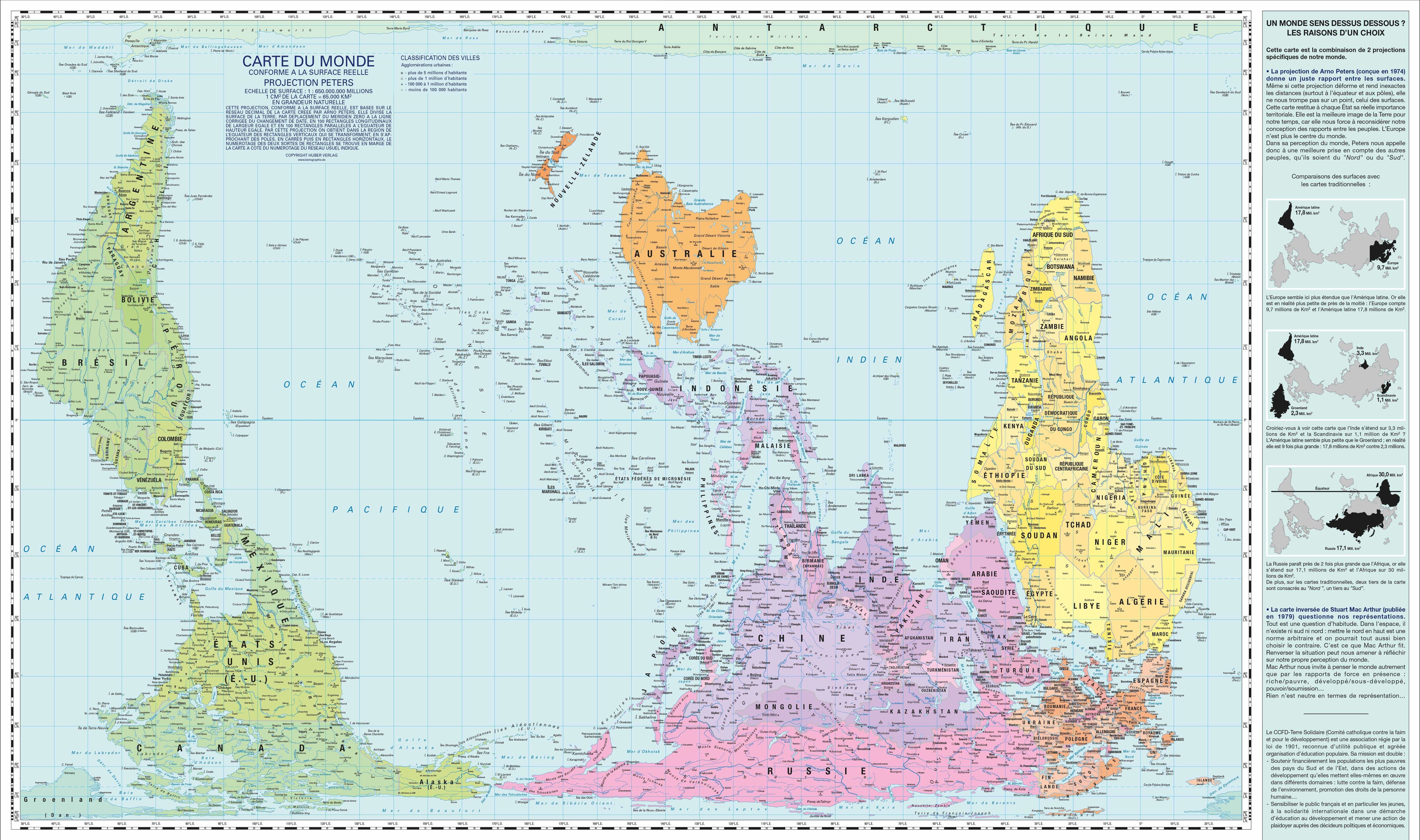 Carte du Monde, Conforme à la surface reelle, Projektion Peters, Echelle de surface 1:635500000 Millions (francouzsky)
