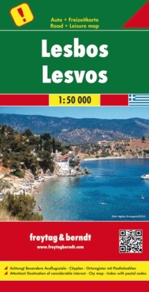 Jednostranná regionální automapa Lesbosu. Mapa s bohatým turistickým obsahem je svým měřítkem vhodná pro poznávání regionu autem či na kole (cyklotrasy). Silniční síť je označena čísly komunikací, zvýrazněny placené úseky silnic, symbolické znaky pro benzínové stanice, odpočívadla, motely,...