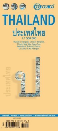 Unsere folienbeschichtete, gefaltete Karte von Thailand in der 6. Auflage beinhaltet: Thailand 1:1 500 000, Bangkok 1:22 000, Großraum Bangkok 1:125 000, Chiang Mai 1:22 000, Mae Hong Son 1:14 000, Nordwest Thailand 1:835 000, Phuket 1:350 000, Ko Samui & Ko Phangan 1:350 000, eine administrative...