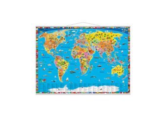 Illustrierte politische Weltkarte, Planokarte m. Metallbeleistung (německy)