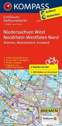 Kompass Großraum-Radtourenkarte Niedersachsen West, Nordrhein-Westfalen Nord, 2 Bl. (německy)