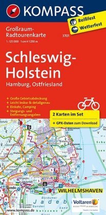 Kompass Großraum-Radtourenkarte Schleswig-Holstein, Hamburg, Ostfriesland, 2 Bl. (německy)