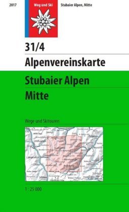 Topographische Karte 1:25.000, mehrfarbig, Wegmarkierungen, Klettersteige, Skirouten, Schummerung, Felszeichnung, UTM-Gitter, sehr detaillierte Darstellung. Gebiet: Zentrale Stubaier Alpen von Praxmar im Norden bis Mutterberg/Stubaital im Süden, Gries im Sulztal im Westen,...