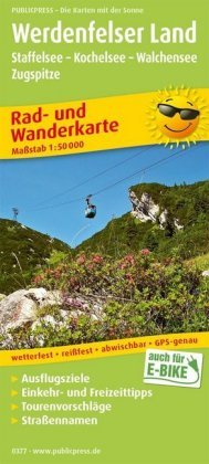Der Kartenausschnitt bietet im nördlichen Teil v. a. Radwanderwege durchs Bayerische Oberland mit seinen Seen (Kochel-, Walchen-, Staffelsee). Ein weiterer Fernradweg führt entlang der Isar. Im Werdenfelser Land mit seinen Gebirgen sind konditionsfordernde Wanderwege markiert. Eine Nebenkarte im...