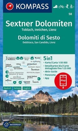 Turistická mapa 5v1 1:50000 s panoramatem, aktivním průvodcem a podrobnými mapami včetně mapy pro offline použití v aplikaci KOMPASS. Cyklus. lyžařské túry. běh na lyžích 1: 50 000. S panoramatem a aktivním průvodcem s venkovními tématy, podrobnými mapami a pěšími túrami. cpl. v průhledném pouzdru, voděodolné.