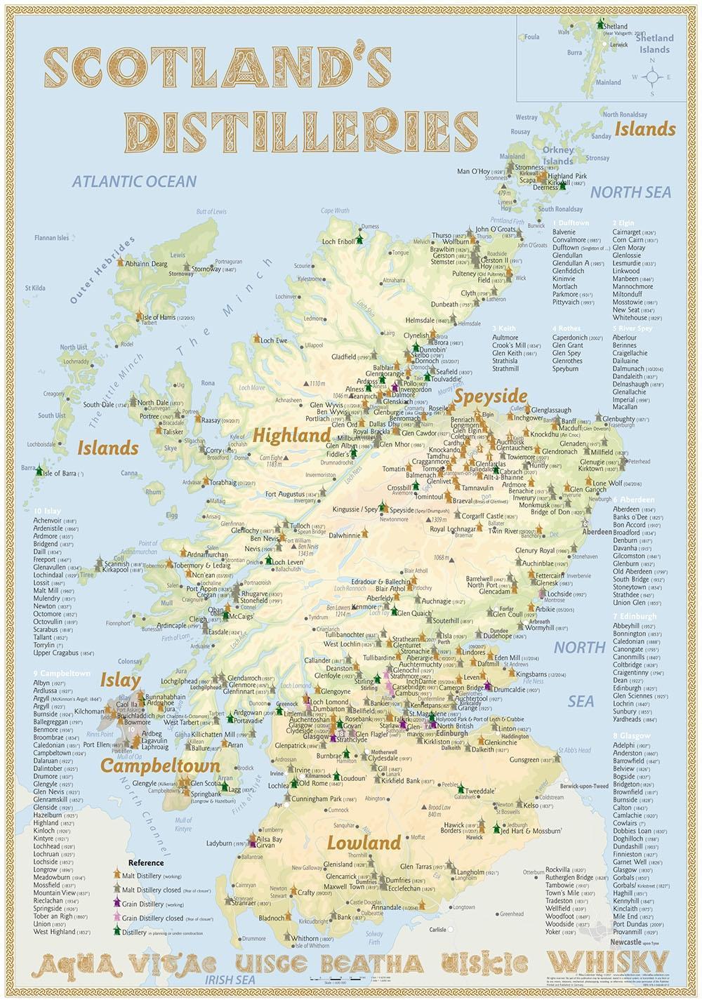 Whisky Distilleries Scotland - Poster Standard Edition 70 x 100 cm (anglicky)