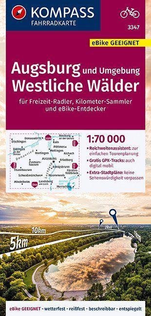 KOMPASS Fahrradkarte Augsburg und Umgebung, Westliche Wälder 1:70.000, FK 3347 (německy)
