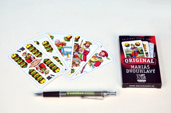 Mariáš dvouhlavý společenská hra karty v papírové krabičce 6x11cm