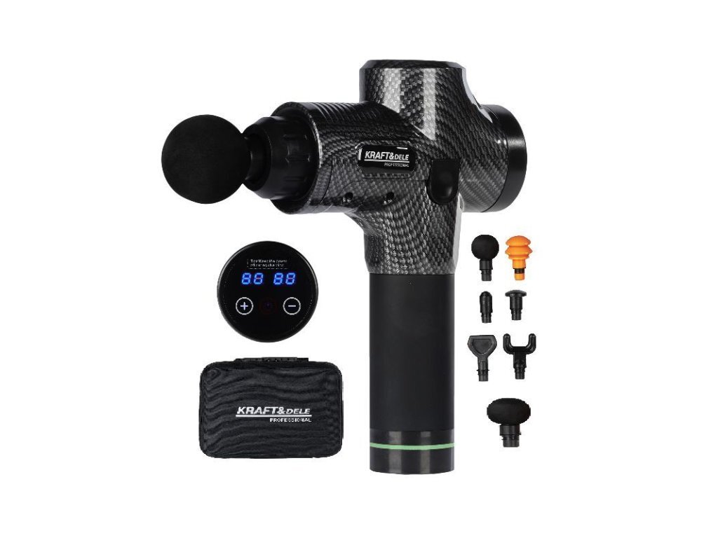 Masážní pistole 250 W, sada 9 ks vyměnitelných hlavic - KRAFT&DELE;