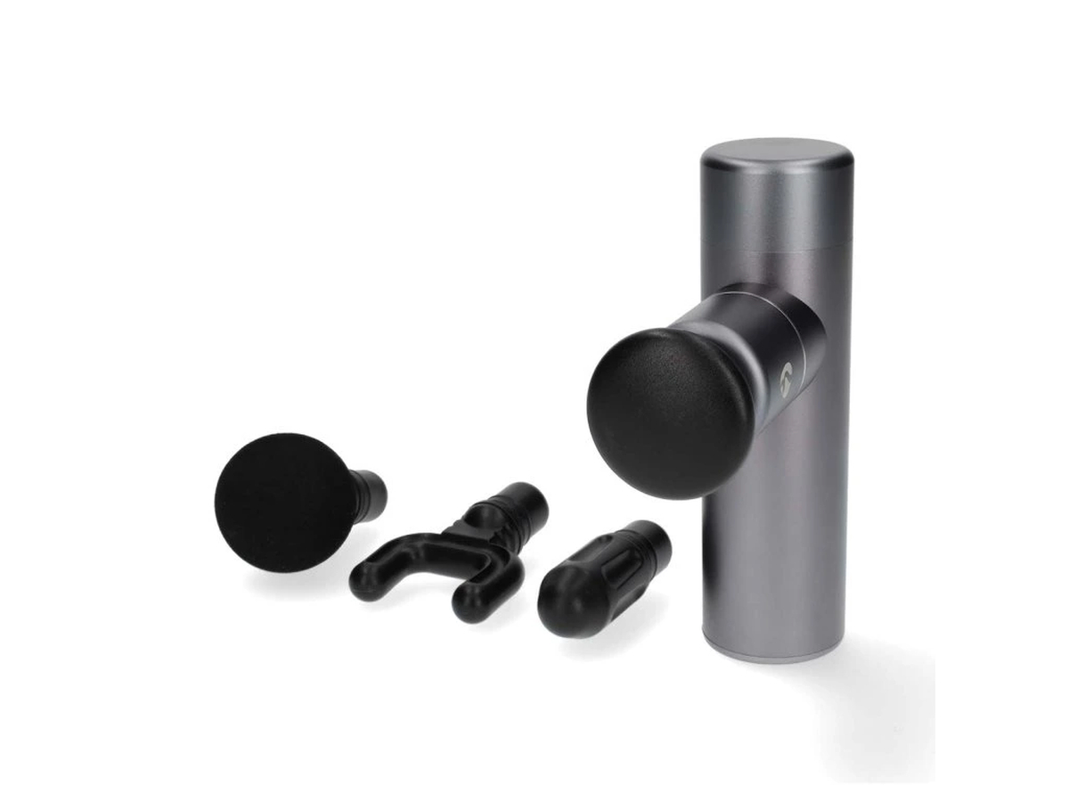 Nedis SmartLife Sportovní Masážní Pistole | Napájení Accu | Vestavěný Lithium-Ion | Dobíjecí | 5 Režimů masáže | Hlava ve tvaru U / Kónická hlava / Kulovitá hlava / Plochá hlava / Taška se stahovací šňůrkou | Tmavě Šedá