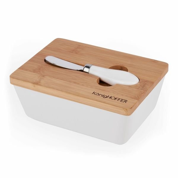 Maselnica o rozmeroch 17x12x7 cm kombinuje prírodné materiály a jednoduchý dizajn pre modernú kuchyňu. Keramická miska v bielej farbe je odolná a ľahko sa udržiava v čistote, zatiaľ čo bambusové veko s nožíkom pridáva príjemný prírodný akcent a zaručuje praktické zaobchádzanie s maslom. Vďaka kompaktným rozmerom sa maselnica zmestí aj na menšie priestory a vždy vyzerá elegantne a esteticky.