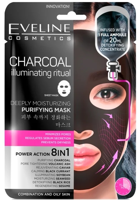 Eveline Charcoal Illuminating Ritual Deeply Moisturizing Purifying Face Sheet Mask