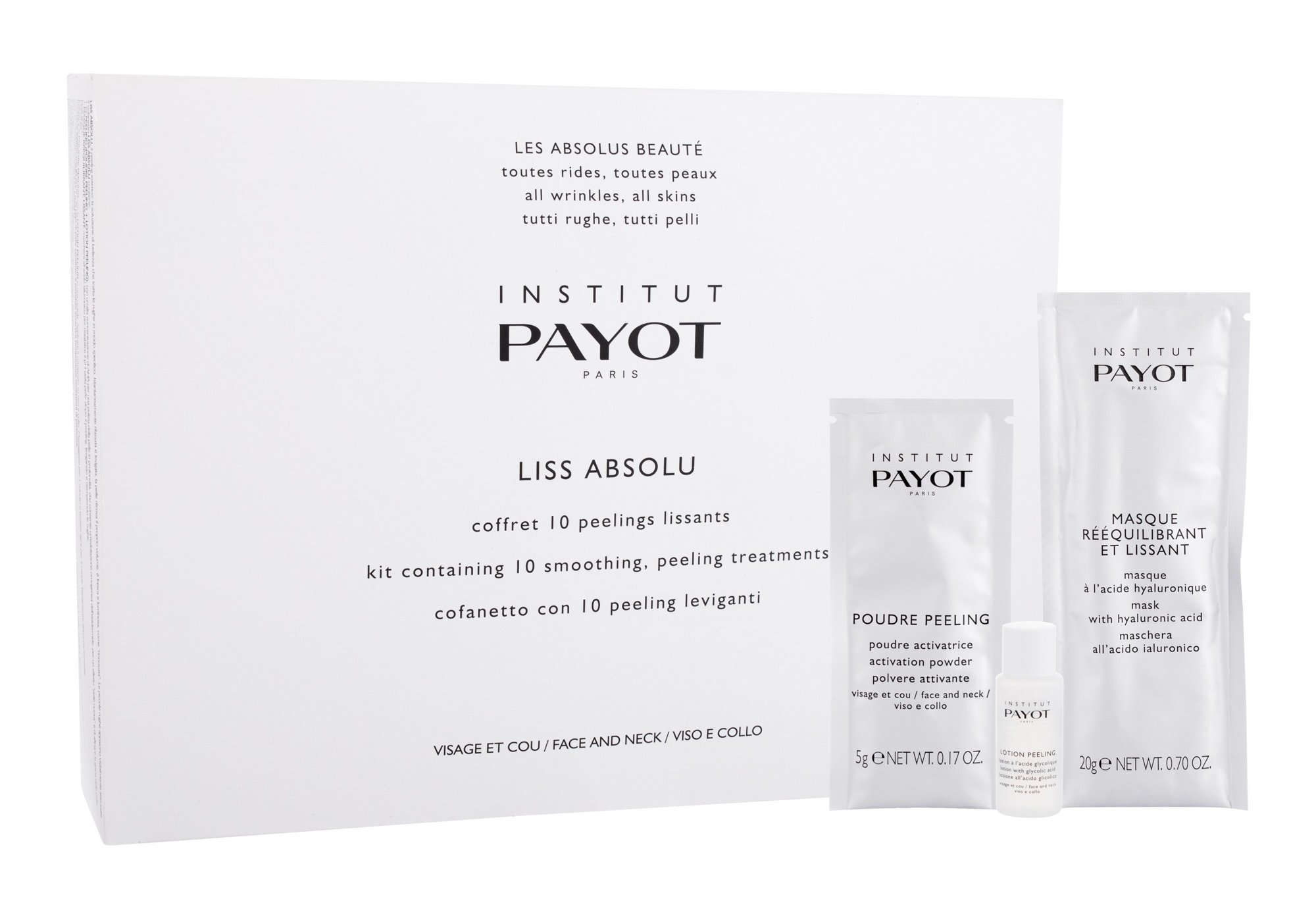 PAYOT Liss Absolu pleťový peeling Lotion Peeling 10 x 10 ml + aktivační prášek Poudre Peeling Activation Powder 10 x 5 g + pleťová maska Mask with Hyaluronic Acid 10 x 20 g