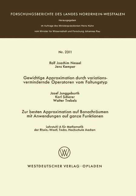 Gewichtige Approximation durch variationsvermindernde Operatoren vom Faltungstyp. Zur besten Approximation auf Banachräumen mit (německy)