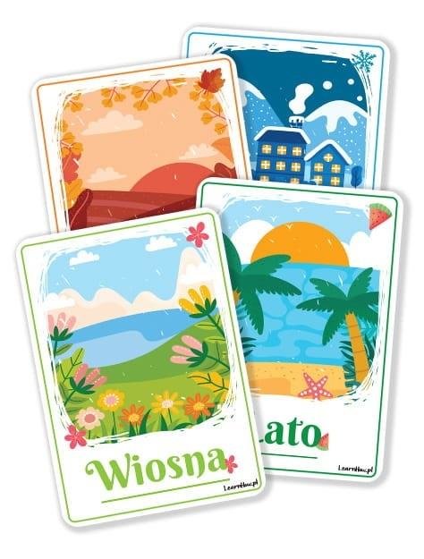 Zestaw dużych kolorowych plansz przedstawiających pory roku z podpisami.