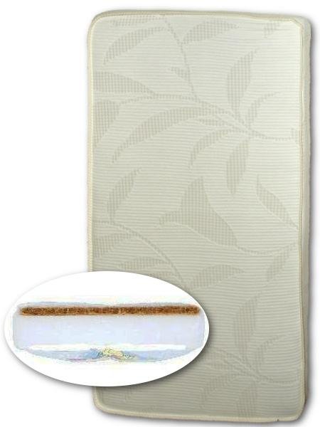 Luxusní pěnová matrace s vrstvou kokosového vlákna. Matrace má oproti ostatním nadstandardní výšku 9 cm. Má rovněž bavlněný, sundávací, pratelný obal. Vyrobeno z atestovaných materiálů. Rozměry 120x60 cm. Složení vrstev: 1 cm kokosová rohož, 8 cm molitan. Květinové vzory se liší dle aktuální nabídky.