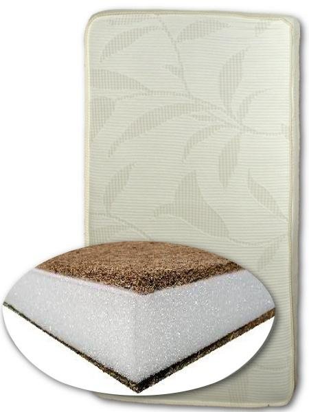 Luxusní pěnová matrace se dvěmi vrstvami kokosového vlákna nahoře i dole, pro zdravé spaní vašeho dítěte. Matrace má nadstandartní výšku 10 cm a bavlněný, pratelný, sundávací obal. Vyrobeno z atestovaných materiálů. Rozměry 120x60 cm. Složení vrstev: 1 cm kokosová rohož, 8 cm molitan, 1 cm kokosová rohož. Květinové vzory se liší dle aktuální nabídky.