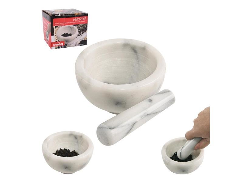 Hmoždíř na drcení koření, bylinek, přípravu pesta, směsí bylinek s olejem,.... Připravíte si směs koření podle Vaší chuti, provoníte celou domácnost. Materiál: mramor. Rozměry: vnitřní pr. 9 cm, vnější 11,5 cm, v. 6 cm, délka tloučku 13 cm. prečítať celé