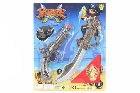 Sada pirátských zbraní Puška velikost cca 25,5 cm, mačeta cca 32 cm, šátek, odznak, plastový kryt na oko. Materiál plast. Rozměr balení 38 x 31 cm. Věk 3+ prečítať celé