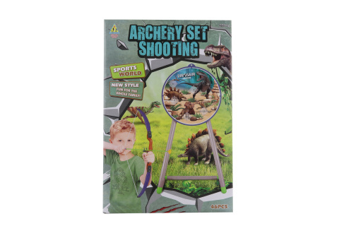 Plastová sada luku se šípy. V balení kulatý plastový terč s obrázky dinosaurů. Rozměry balení cca 48x32x5 cm. Věk 3+ prečítať celé