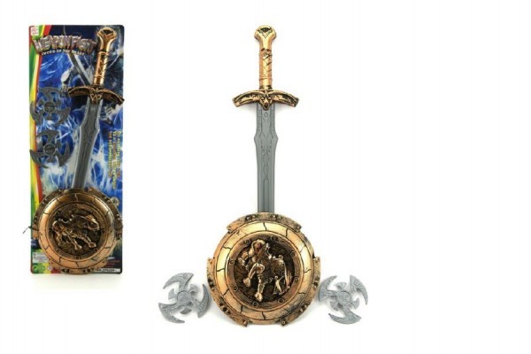 Meč se štítem a doplňky plast na kartě 21x57cm