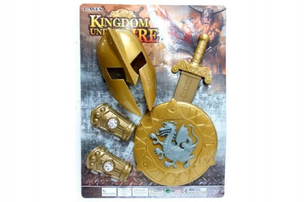 Sada rytíř meč, štít s přilbou a doplňky plast na kartě 43x58cm