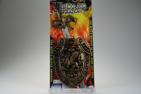 Meč o délce cca 49 cm a štít o rozměrech cca 20 cm X 26 cm.Věk 3+ prečítať celé