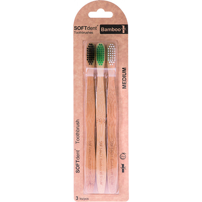 Klasický kartáček SOFTdent Bamboo nesmí chybět v žádné koupelně. Pro běžného člověka bez jakýchkoliv problémů se doporučuje kartáček s 2 400 až 4 000 vlákny. Nižší počet vláken je na hranici tvrdého kartáčku a vyšší počet vláken je pro lidi s problémy dásní či odhalených krčků.
