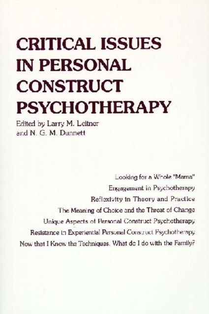 Personal Construct Psychology (PCP) utilises phenomenological approaches to understanding a person, and this book discusses theoretical and technical issues in the field of psychotherapy. Therapists discuss how the construct theory allows them a better understanding of their clients.