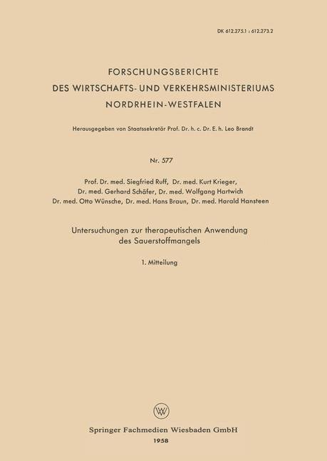 Untersuchungen zur therapeutischen Anwendung des Sauerstoffmangels (německy)