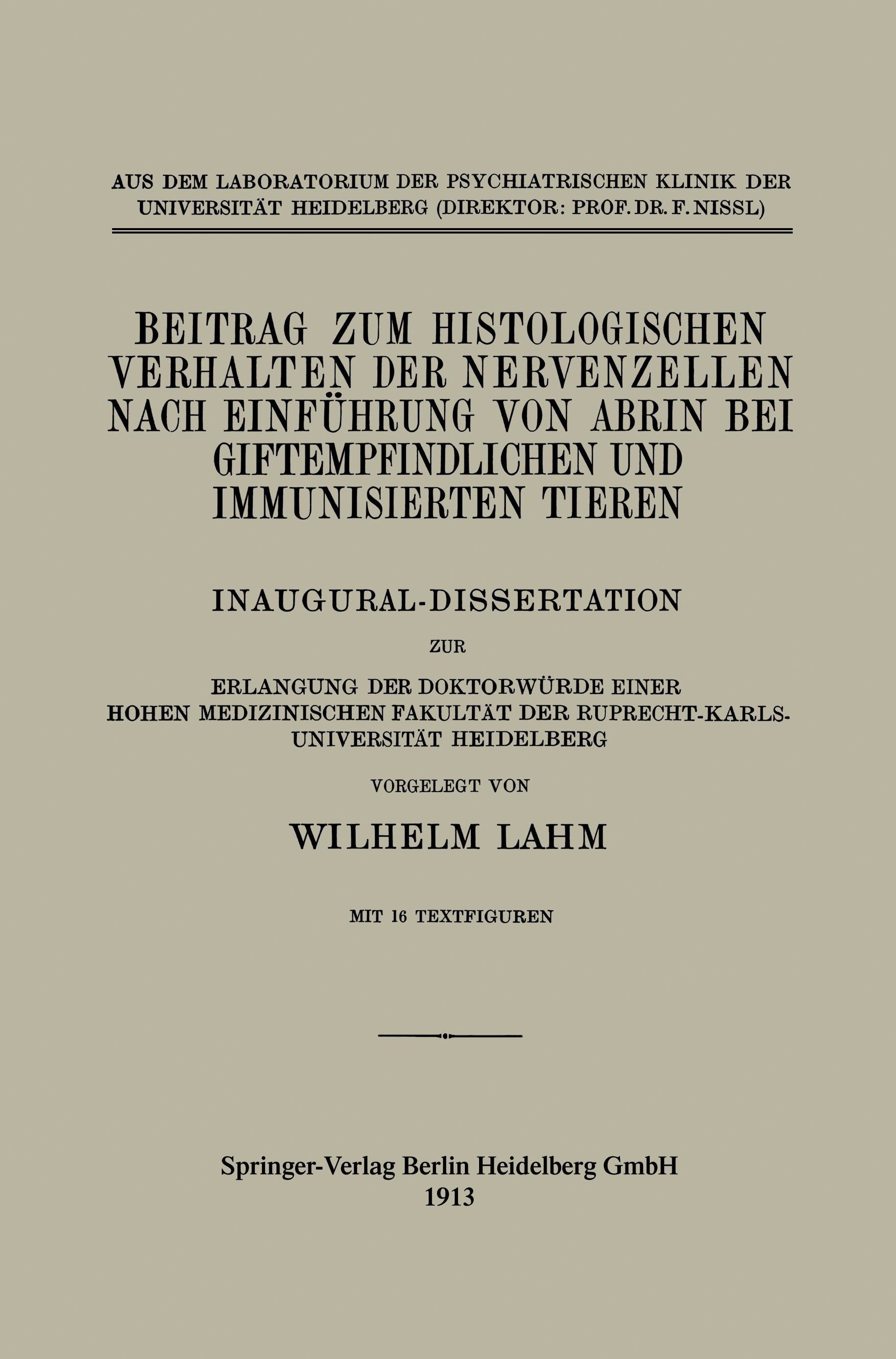 Beitrag zum Histologischen Verhalten der Nervenzellen nach Einführung von Abrin bei Giftempfindlichen und Immunisierten Tieren (německy)