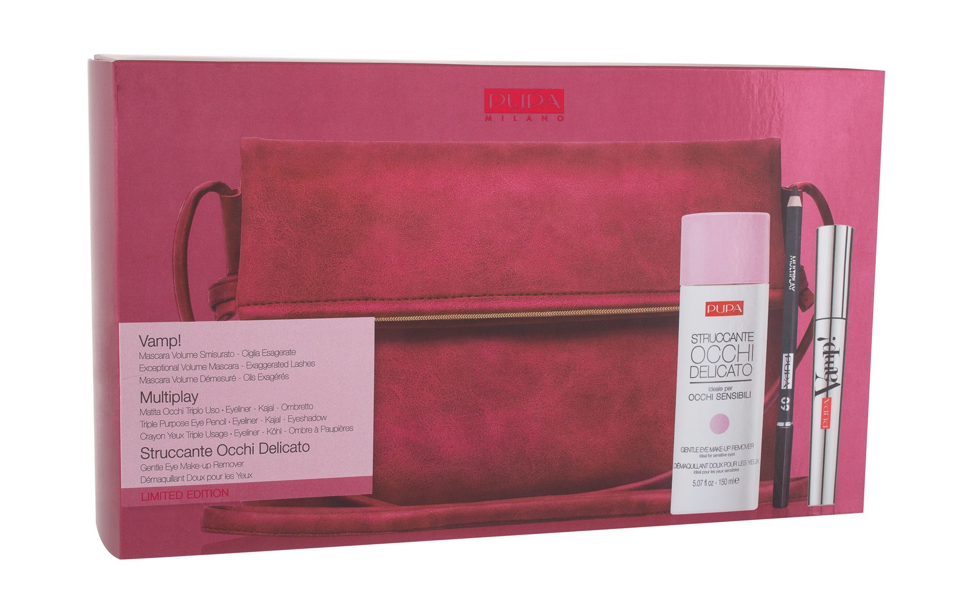 Pupa Vamp! řasenka Vamp! 9 ml + tužka na oči Multiplay 1,2 g 09 Deep Black+ odličovací přípravek na oči Gentle Eye Make-up Remover 150 ml + kabelka