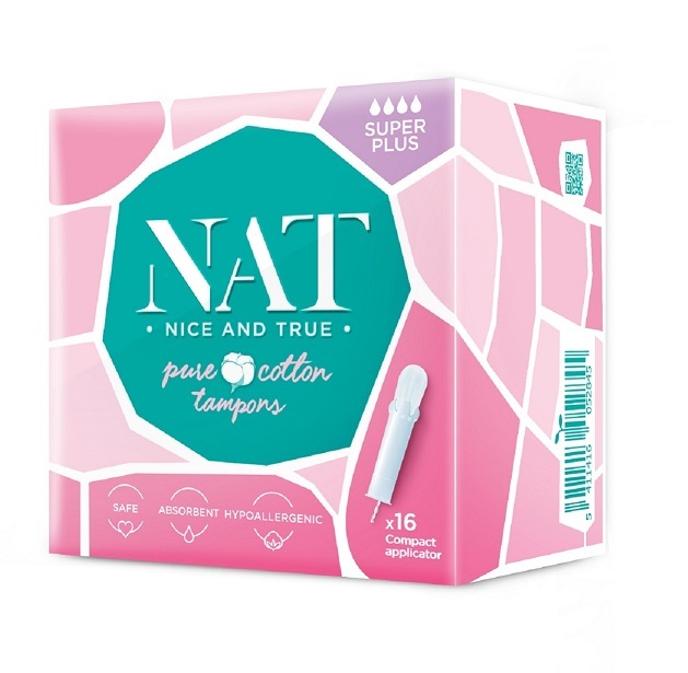 Tampony NAT nice & true z organické bavlny - s aplikátorem - super plus (16 ks)