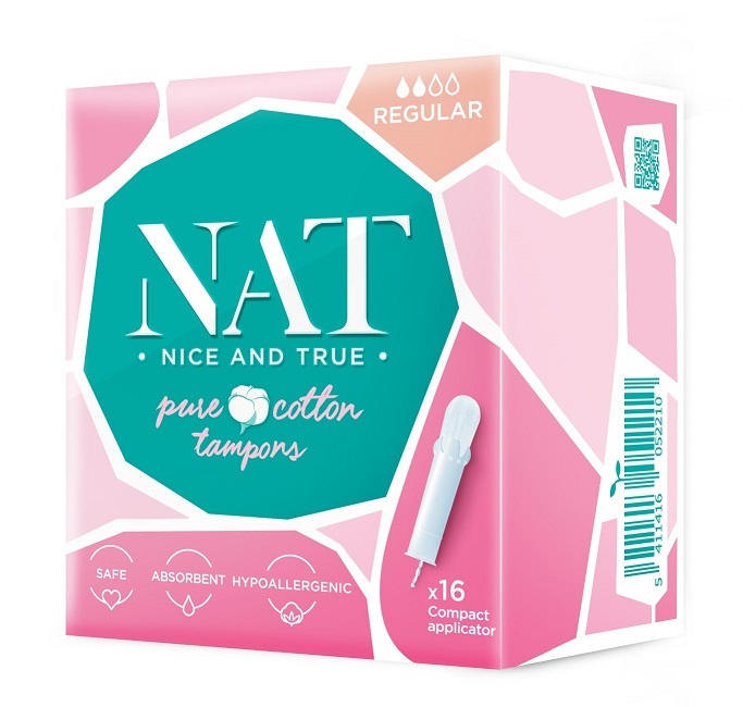 Tampony NAT nice & true z organické bavlny - s aplikátorem - regular (16 ks)