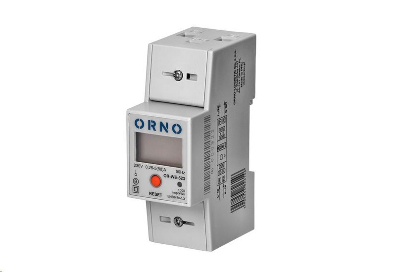 Elektroměr 1F na DIN lištu digitální ORNO OR-WE-523, MID, RS-485, 80AJednofázový, jednosazbový podružný elektroměr pro montáž na DIN lištu.Zařízení pro provádění indikací v kWh s možností dálkového odečtu registrů indikátorů, přes drátovou síť standardu RS-485. Speciální elektronický obvod tokem...