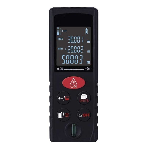 automatické vypnutí: po 3 minutách|jednotky měření: m, ft, in, m², ft², m³, ft³|měřící funkce: délka, plocha, objem, kontinuální měření, pythagoras|měřící vzdálenost: 0,05–40 m|napájení: 2× 1,5 V AAA (není součástí balení)|podsvícený displej: ano|přesnost měření: +/- 2 mm|prodejní obal: 1 ks, krabička|rozměr: 25 × 40 × 110 mm