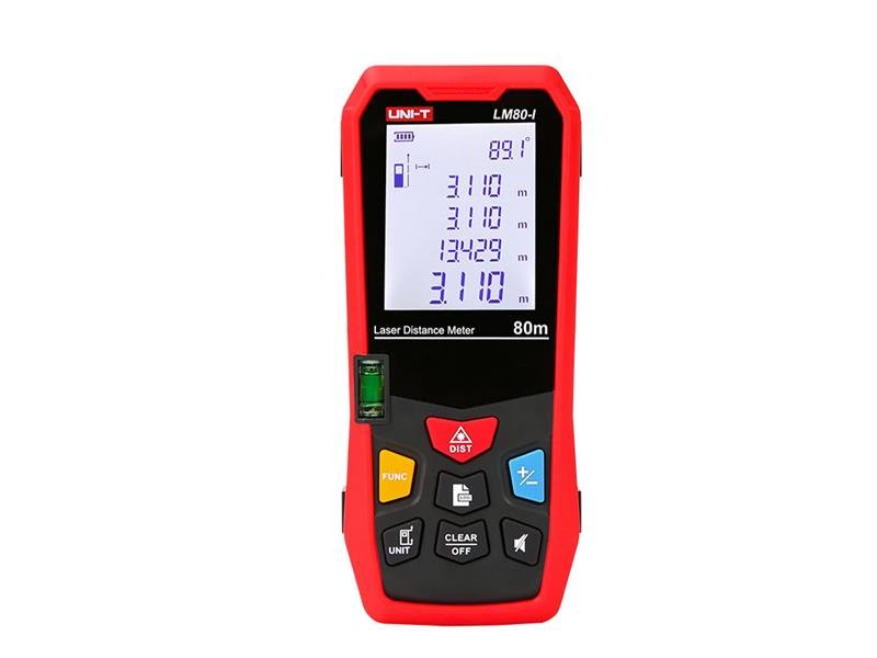 Laserový dálkoměr LM80-I s délkou měření až do 80 metrů s funkcemi měření délky, objemu, obsahu, měření s využitím dvou referenčních bodů a pamětí na 20 měření. Dálkoměr podporuje funkce sčítání, odčítání měřených hodnot, možnost kontinuálního měření, výpočtu rozměru třetí strany dle Pythagorovy věty. Dálkoměr podporuje funkci automatického vypnutí laseru po 30 sekundách a úplné vypnutí přístroje po 3 minutách v případě nečinnosti.