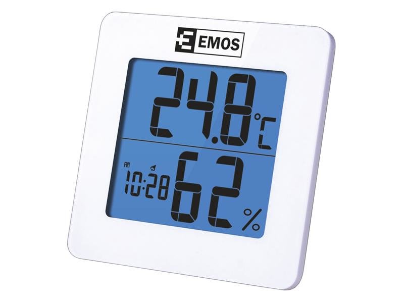 Teploměr EMOS E0114 - hodiny řízené Quartz krystalem - budík s funkcí opakovaného buzení - modré LED podsvícení displeje - zobrazení vnitřní teploty a vlhkosti, hodin, minut, měsíce, data, budícího času - vnitřní teplota 0 °C až +50 °C, rozlišení 0,1°C - vnitřní...