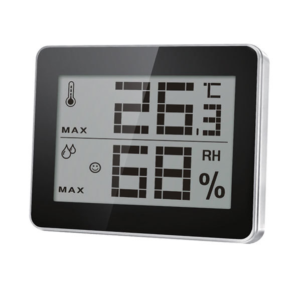 Stylový teploměr/vlhkoměr je ideální pro hlídání prostředí v místnosti. Na displeji díky velkým číslicím na první pohled vidíte pokojovou teplotu nebo vlhkost vzduchu. Smajlík znázorňuje celkovou pohodu prostředí (tzv. komfortní zónu).