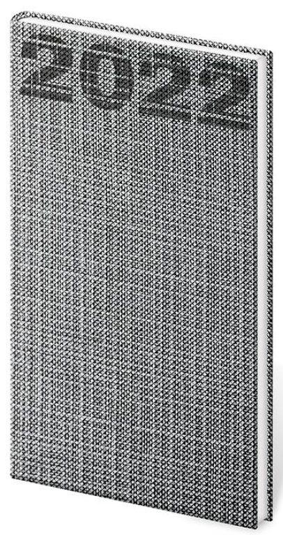 Diář je vyroben z matné koženky se strukturou podobnou textilu.