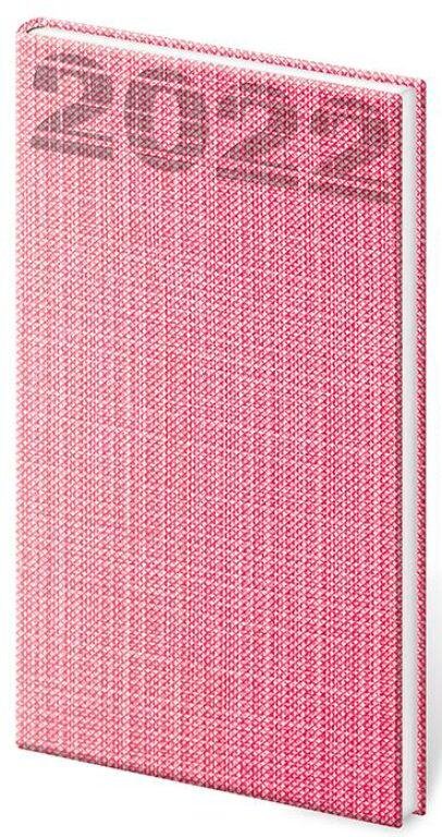 Diář je vyroben z matné koženky se strukturou podobnou textilu.