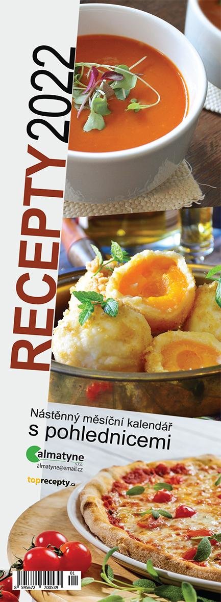 Kalendář 2022 Recepty, nástěnný pohlednicový měsíční, 105 x 290 mm (česky)