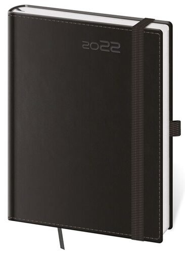Diář 2022 Double - Black, týdenní B6 s poutkem na propisku