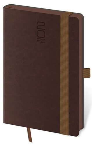Diář 2022 Memory - tmavě hnědý s gumičkou, týdenní kapesní