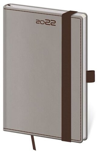 Diář 2022 Double - Cappuccino, týdenní kapesní s poutkem na propisku