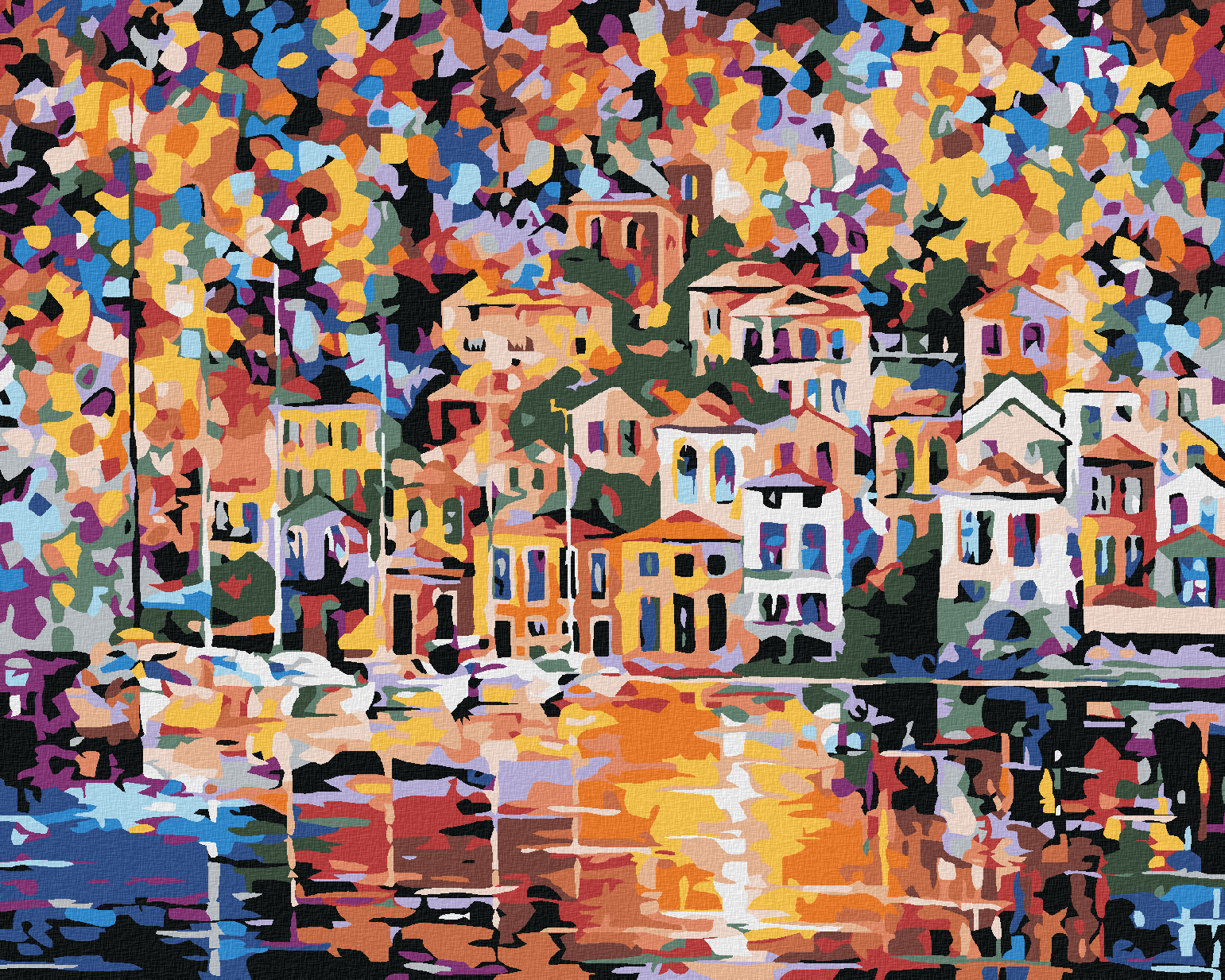 Malování podle čísel - MĚSTEČKO V BARVÁCH - 80x100 cm, vypnuté plátno na rám